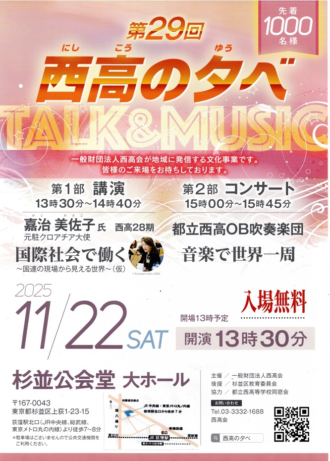 11月には同じ杉並公会堂で開催される、西高の夕べに出演いたします。